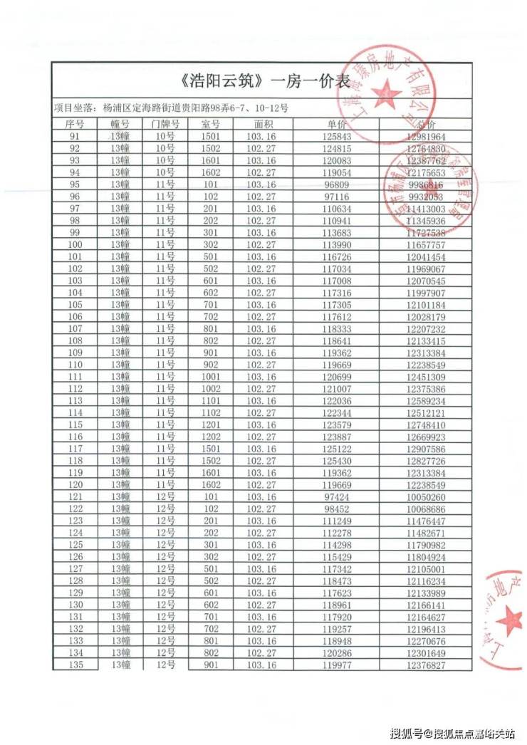 最新一房一价表: