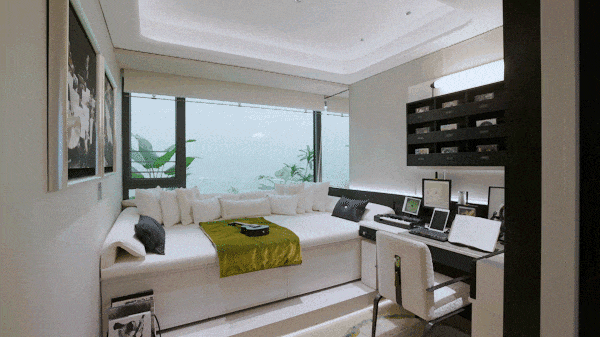 三间卧室尺度阔绰且面宽近乎均等,真正实现家庭成员的居住、视野、采光的平权。
