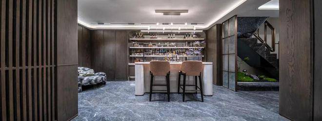 车库入口,以颇具艺术感空间的坡道尺度,招商臻境售楼处电话:400-8854-706配合雪山兰奢石墙面,追光式的灯带设计,营造层层递进的礼序感。