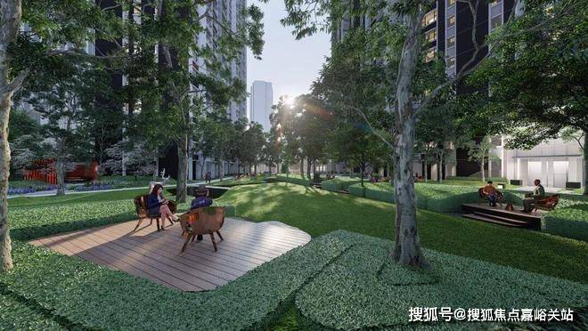 在活动大草坪上互动,其中有专属儿童乐园,景观中还保留了一些休闲平台和户外凉亭可供家长看护孩子,打造住宅花园城市中的平静绿洲,塑造与大自然的互动体验。