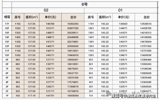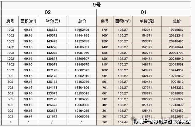 最新一房一价表: