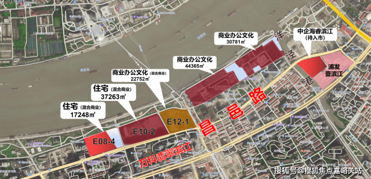 住宅部分 :其中E08-4、E10-2、E12-1三块宅地有其他所有项目都没有的优势。这 3块宅地沿黄浦江一字排开 , 坐拥黄浦江核心段岸线接近1.5公里 。并且与黄浦江之间,做到了真正的无遮挡,配上其陆家嘴北滨江的站位。这三块宅地的价值,称得上塔尖之上。