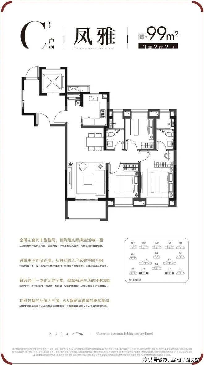 C3户型 | 建面约99㎡3房户型图▼