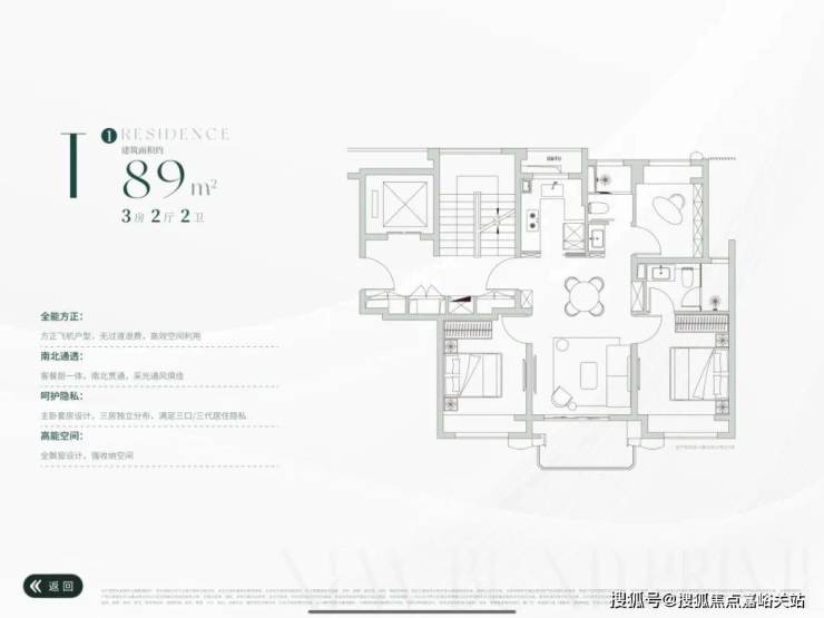 正三面宽朝南,观景阳台+满飘窗配置,提高实用空间,也拓展视觉体验。