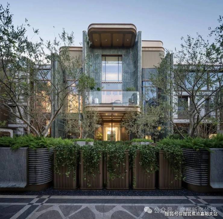 立面上,项目不惜成本,甄选巴西进口亚马逊绿奢石,这种TOP级天然石材,以深邃的纹理与温润的质感,在现代立面上复刻了老绿房子的灵魂,却更显当代奢华气度