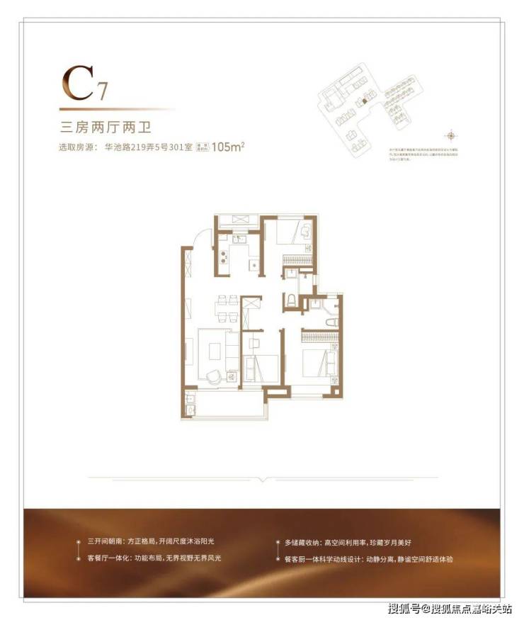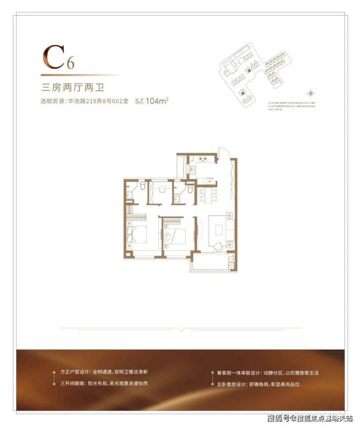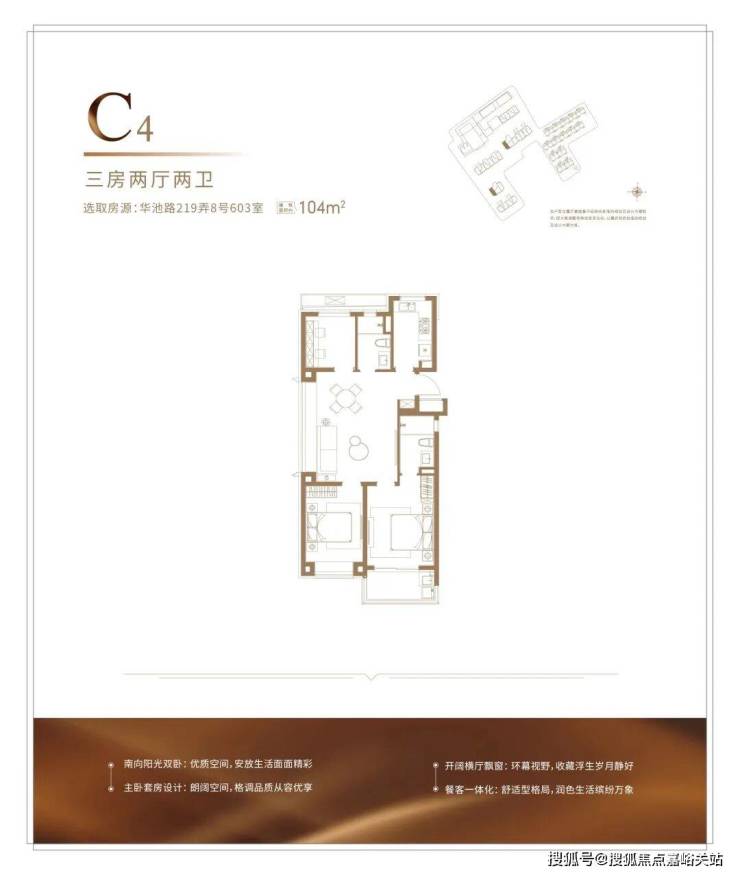 建面约104㎡的户型,能满足从二人世界到二胎生活的全生命周期需求,并且整体2-3开间朝南+客厅宽面阳台,整体的南向采光,视野以及尺度感很优秀,并不会感觉局促。