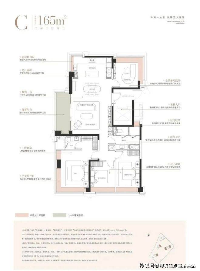 因此,外滩瑞府在建面约165㎡户型中创新推出三四房灵活定制体系。