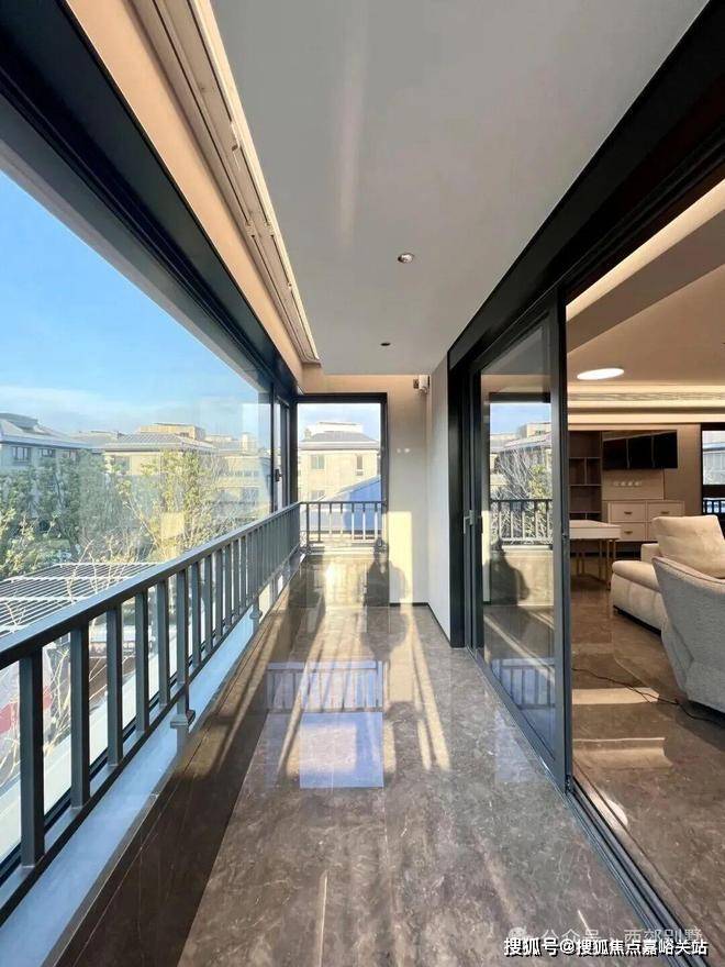 项目由5幢4层平层公寓、5幢3层别墅及1幢保障房组成。平层公寓45套,面积为170-350㎡,别墅23套,地上面积400㎡-690㎡。经典三段式别墅立面及大窗墙比,实现居住与自然的延伸;中灰色石材为基座,奢石宁静与土地矜贵互为映衬。中灰色石材的厚重感,深灰色铝板的舒展度,“安缦金”高奢质感勾勒边框,与蓝眼睛光面石砖、冰花蓝光面石材的交织下,呈现出“天光云影”的意境。
