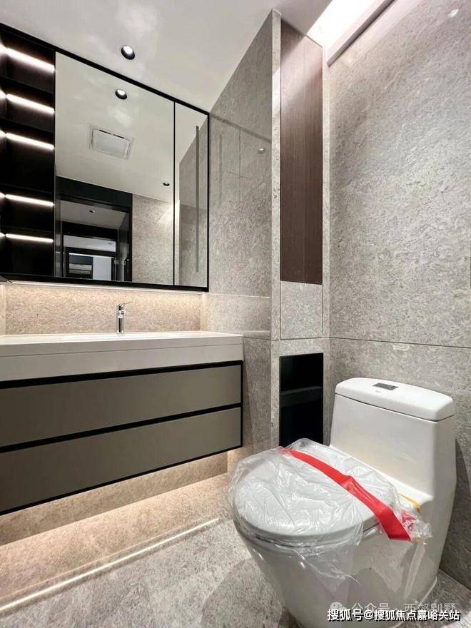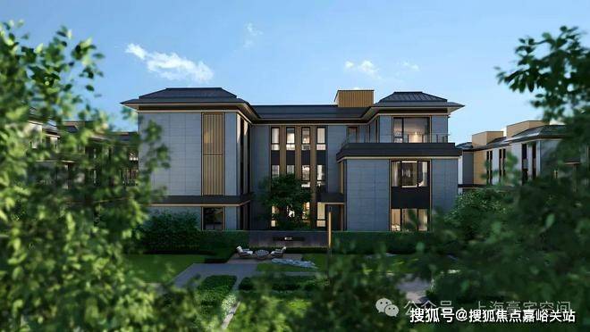 建筑风格:新中式建筑风格,外立面选用干挂石材搭配仿木格栅,线条简洁大气。