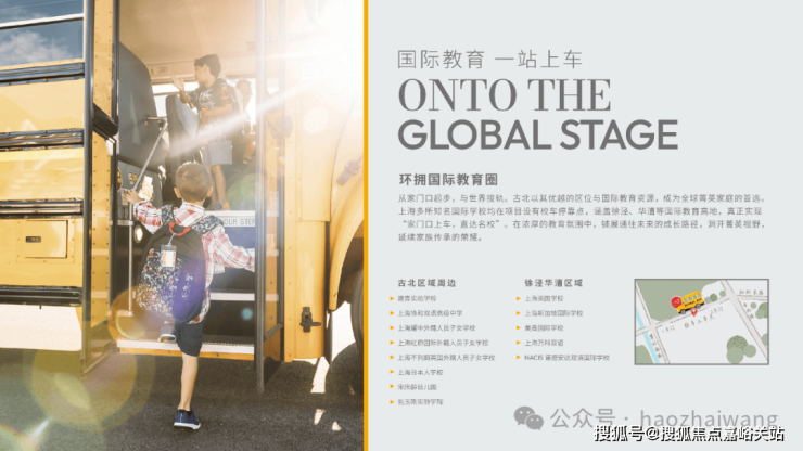 古北区域以其优越的区位与国际教育资源,成为全球菁英家庭的首选。项目周边汇聚多所知名国际学校,真正实现 “家门口上车,直达名校”: