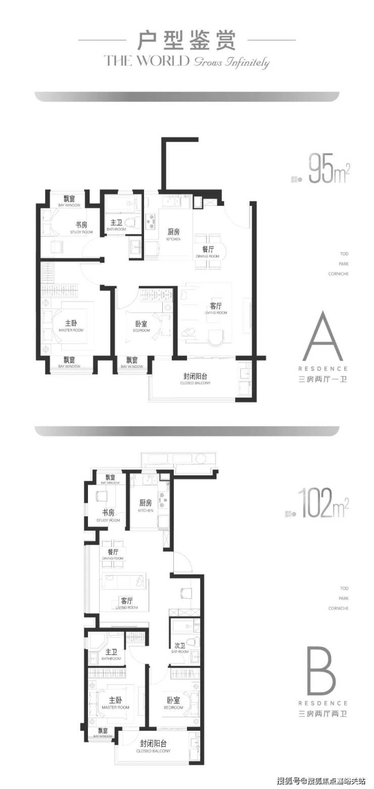 A户型95㎡及B户型102㎡▼