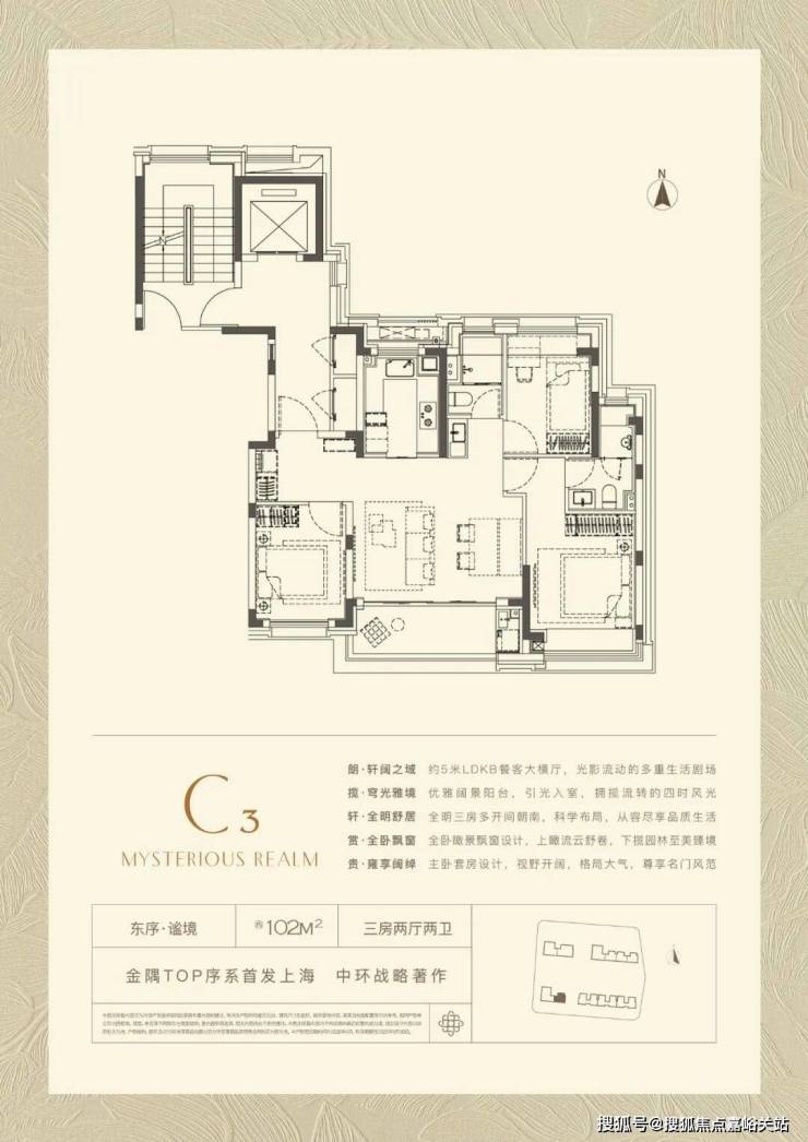 ·建面约102㎡:约5米面宽客厅,飞机户型高利用率