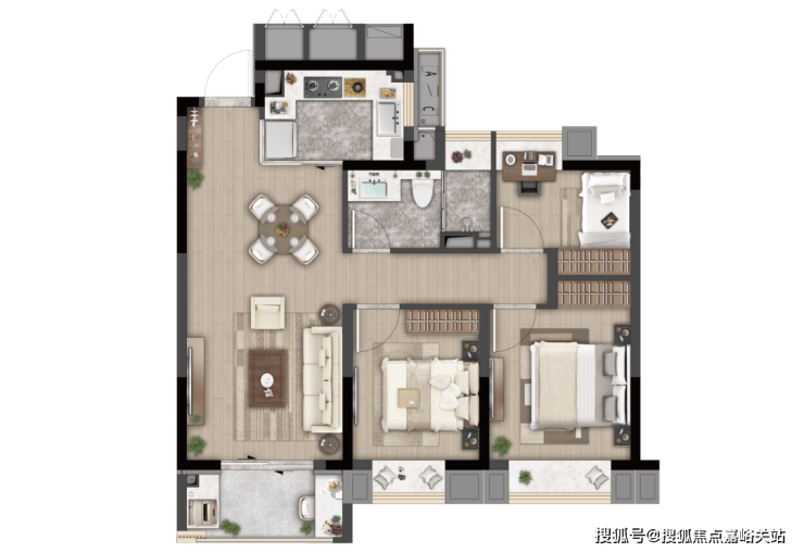C户型 建面约86-88㎡ 3房2厅1卫