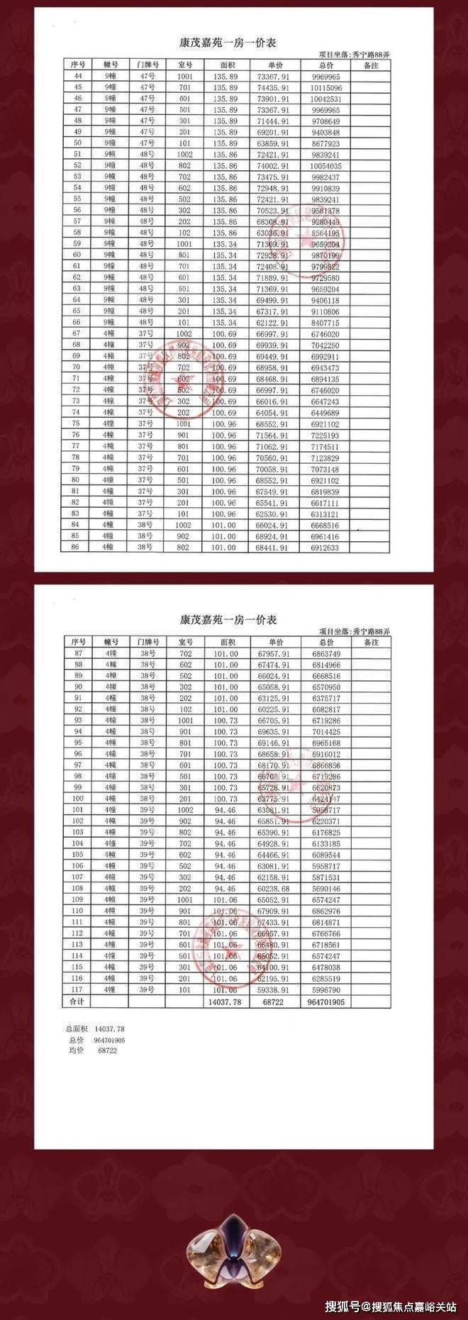 前期一房一价表: