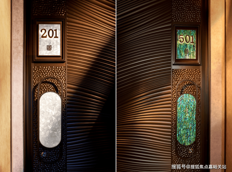 从入户开始, 门把手 与 门牌背景板 均提供双款定制选择, 双色彩三角贝母 定制精准契合高阶人群个性化审美需求,在细节处彰显专属美学格调,兼顾质感与辨识度