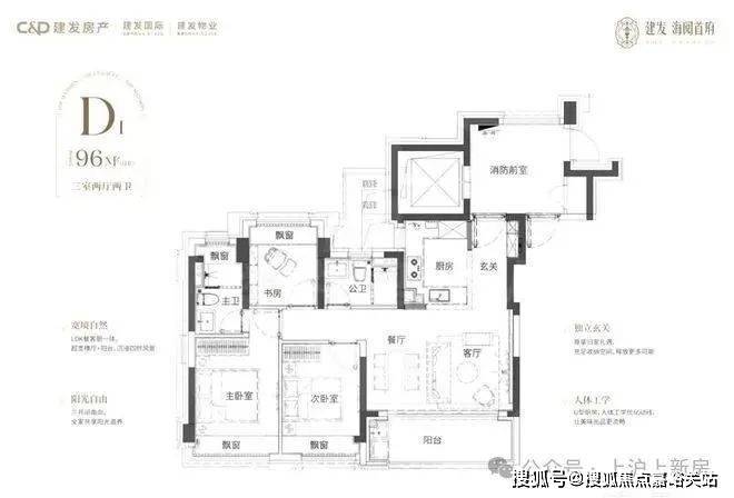 建面约96㎡3房2厅2卫