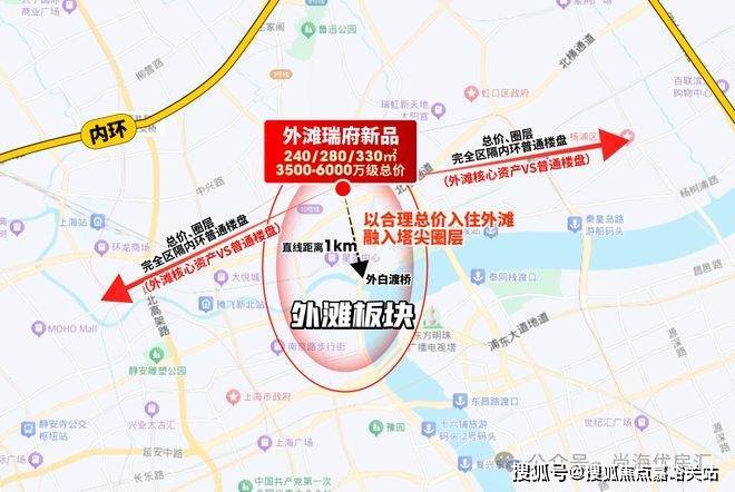 而外滩瑞府核心竞争力,在于其对“外滩核心圈”的精准占位(直线外滩约1公里)。