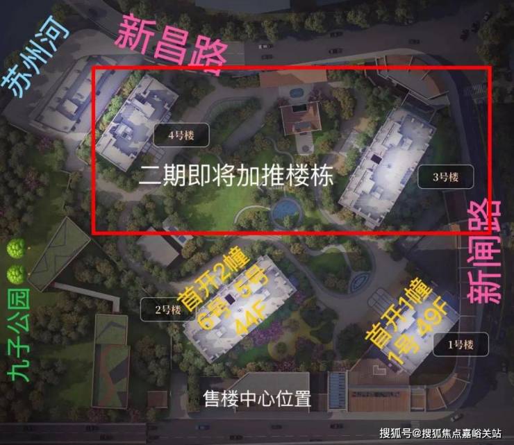 其中3#为超高层,北向可观小区绿化和苏河景观,高区可瞰三件套盛景。