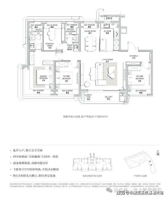 3、南向四开间,面宽约15.5m,独立餐客厅,南北通透
