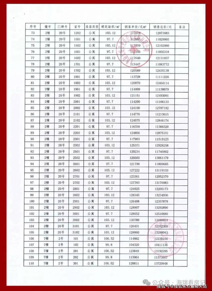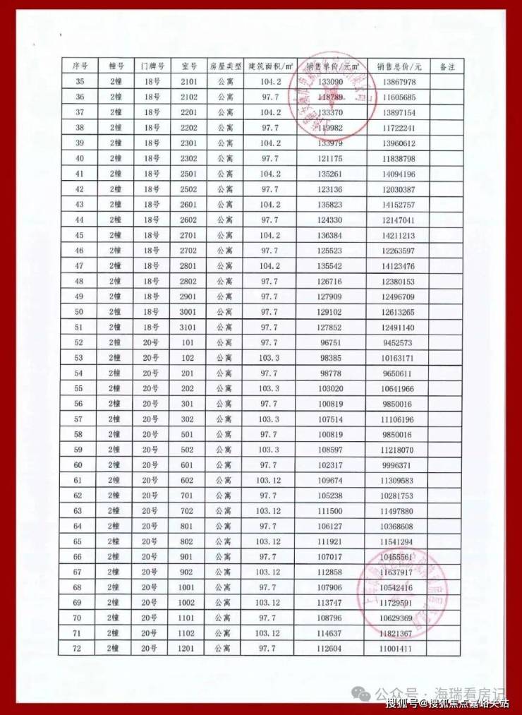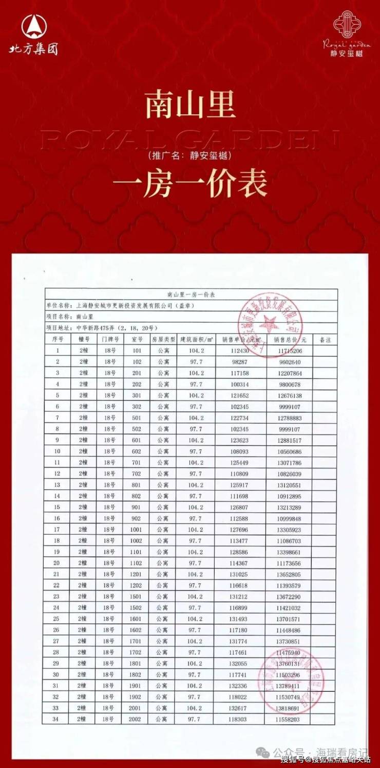 一房一价表如下: