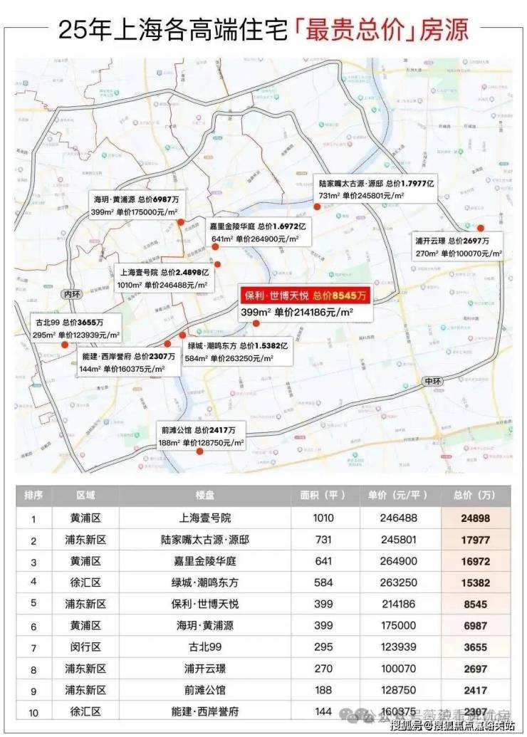 前面讲了2025年上海高端项目的最贵单价TOP10,接下来我们继续来看 最贵总价TOP10: