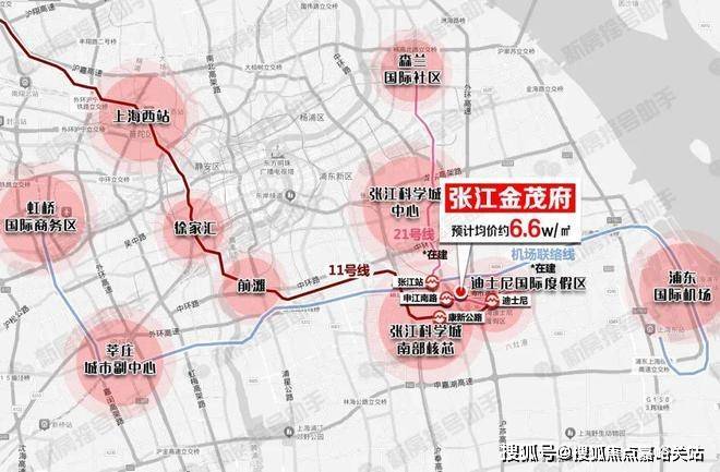 未来机场联络线快速通达浦东机场、上海东站、莘庄以及虹桥商务区,轨交21号线南北向通达张江科学城核芯、森兰国际社区等。