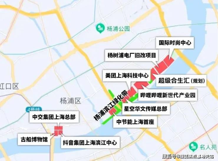 除了已经明确入驻的B站、美团外,字节跳动、得物等互联网公司也布局在杨浦滨江。
