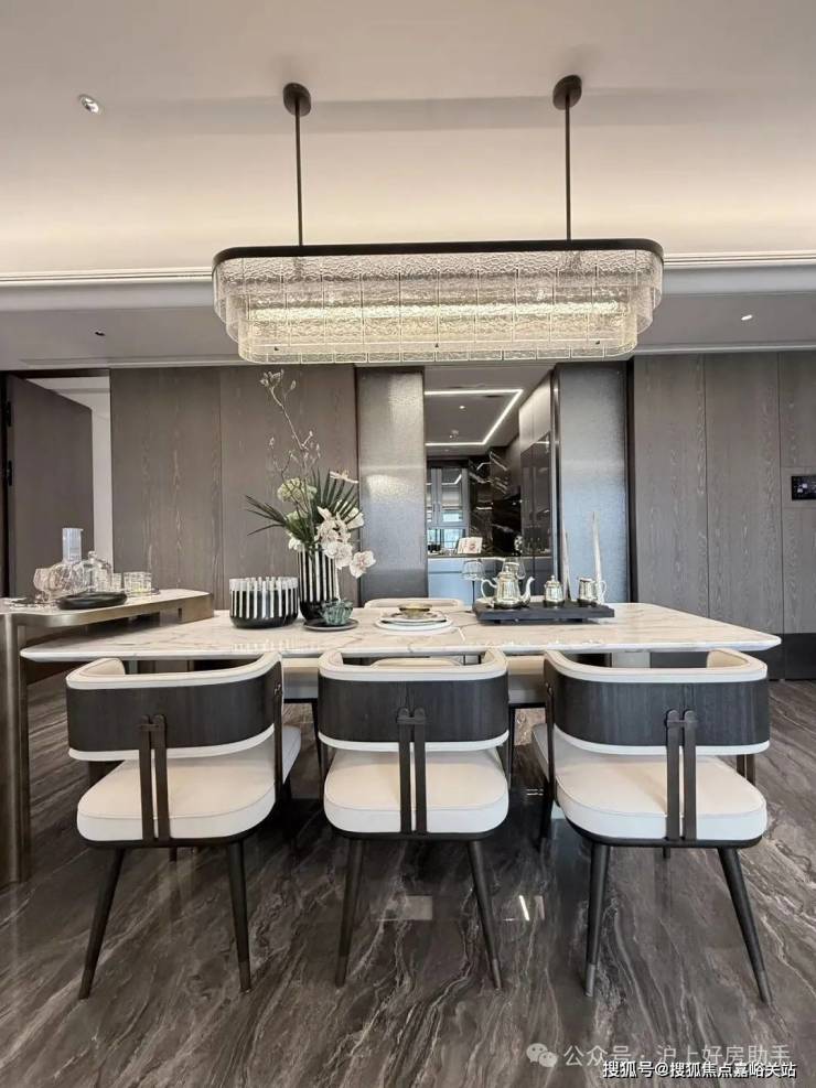翎翠滨江通过大量的奢石、隐藏式细节将整个室内打造成了艺术的殿堂。