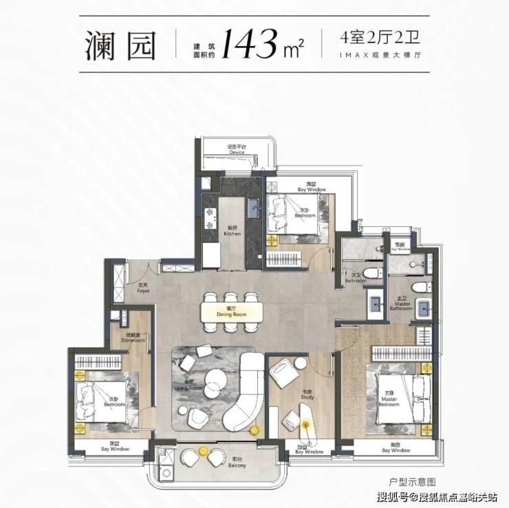 我们以已经开放样板间的建面约143㎡户型为例: