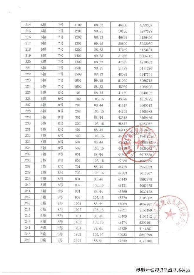 项目一房一价表