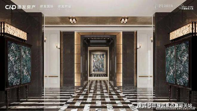 项目整体在外观上非常庄严大气,超10米的整块复古黄铜锤纹牌匾上,写着【建发海阅首府】6个大字,这经典的阵列柱式,有没有让你想到什么?