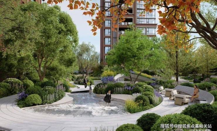 社区景观上,突破市区项目常见的「兵列树阵式」布局,通过建筑楼体的精密偏转,形成罕见的围合式社区形态。