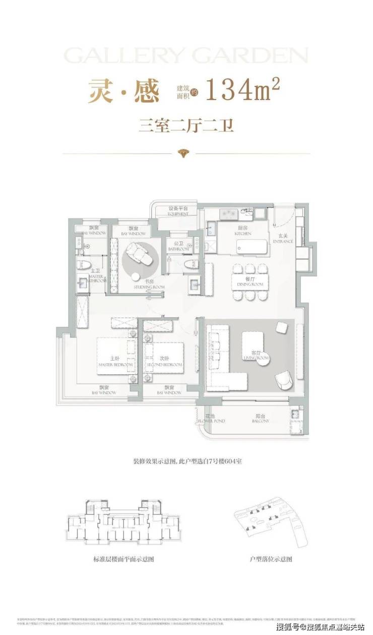 建面约134㎡3房2厅2卫, 主力总价约1500-1700万,户型设计在上一个户型的基础上将各功能间尺度升级的同时,也做了一些更人性化的迭新。