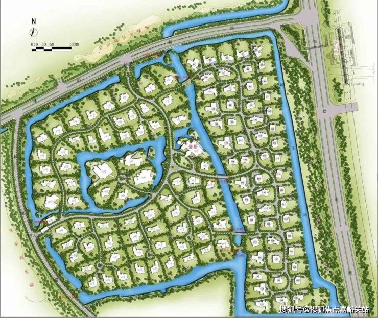 以山水为尊是富豪阶层选择居所和建筑师设计豪宅选址的共识。中国传统的风水意识也强调“ 风水之法,得水而上”。 月湖山庄结合原生河道,对部分水系重新整治,营造出大岛、小岛、半岛、水湾相呼应的整体格局,堆土成坡,叠石理水,增强视觉美感,别墅、公建、小品与绿化环境完美融合,由“树干”式道路串联起各个别墅组团,以“树枝”形尽端道路联系起各栋别墅单体,使内部交通体系层次分明,形式独特。