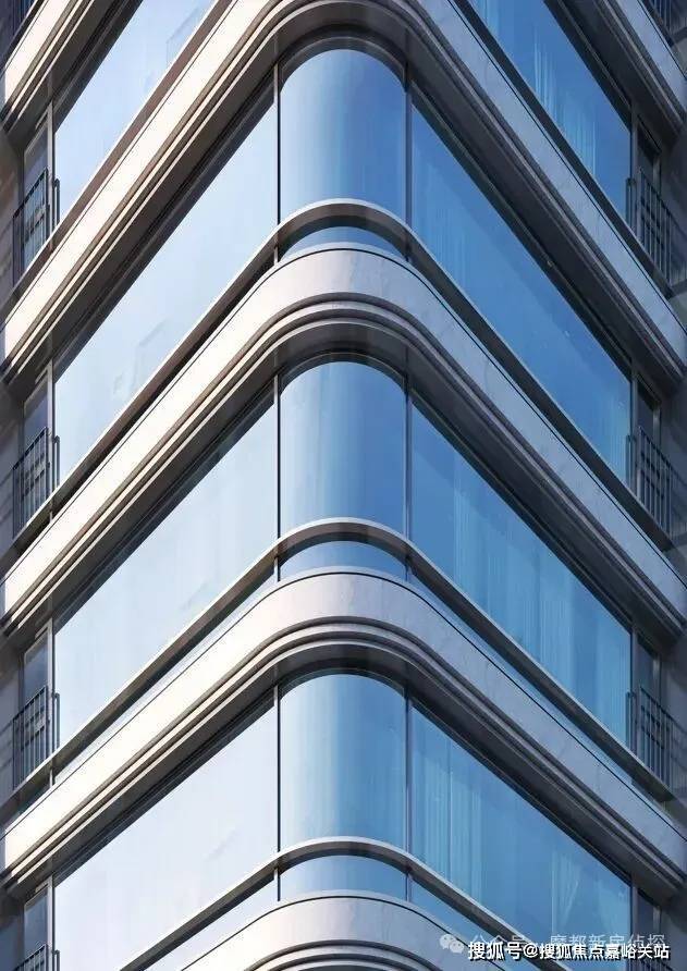 顶部鎏金塔冠,曲面拉伸铝网包裹古铜质感金属铝板, 革新板块城市界面,也形成独具观赏性、 标志性的地标重塑上海天际线轮廓。