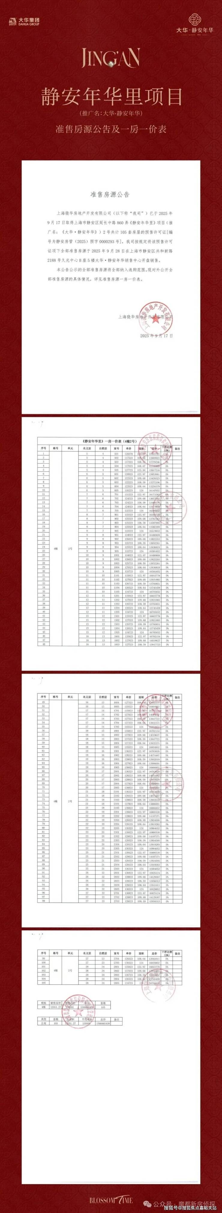 大华静安年华一房一价表:
