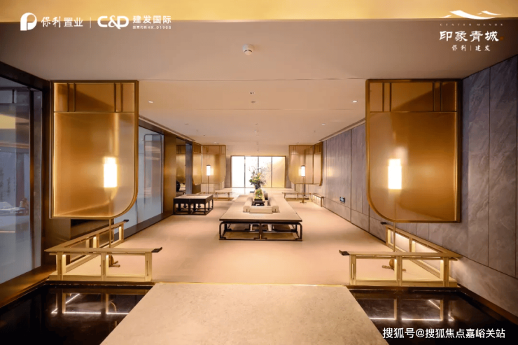 在建筑技艺上,保利|建发·印象青城将创造性的方格眼窗与另一经典窗型“一马三箭式”相结合,用烫金的不锈钢突出表现,让建筑形象更富有层次感。