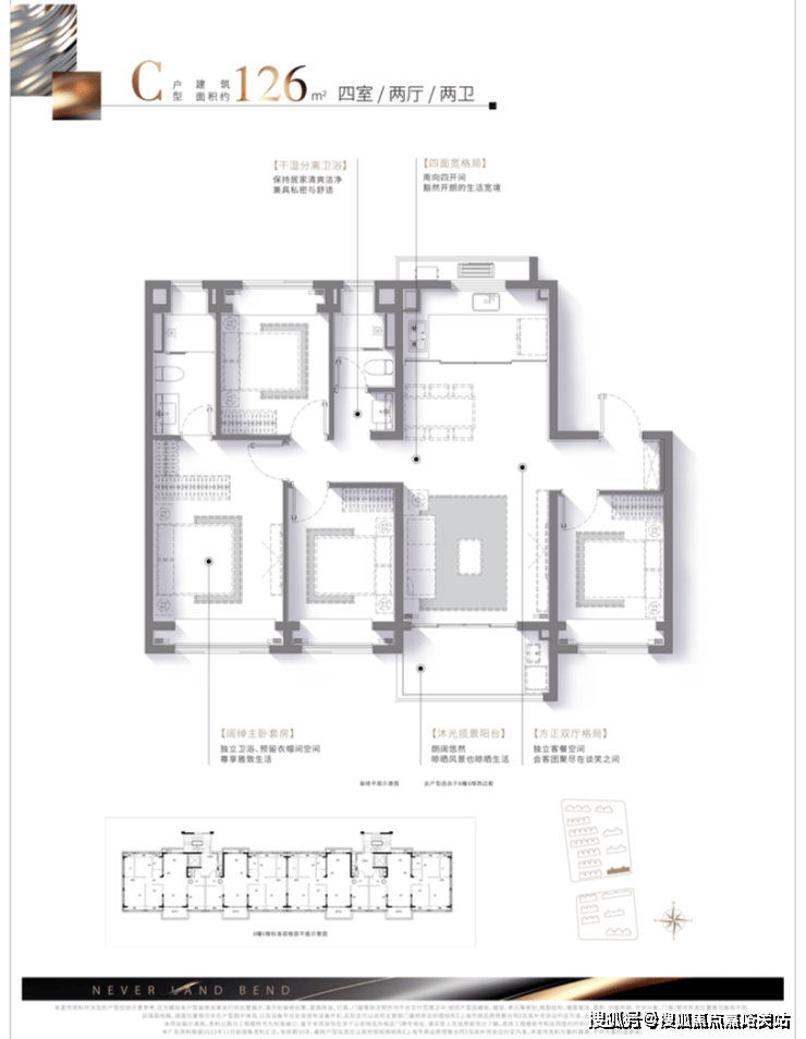 招商云澜湾售楼处电话:400 - 8894 - 986😃😃建面约126㎡四房两厅两卫,更大限度保留了南向房间,四开间朝南,并且是LDKG一体化设计,全飘窗设计,更大大增加了室内尺度感和实用空间。
