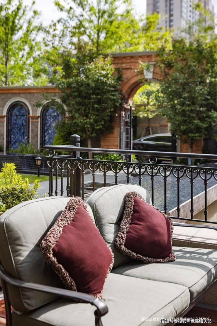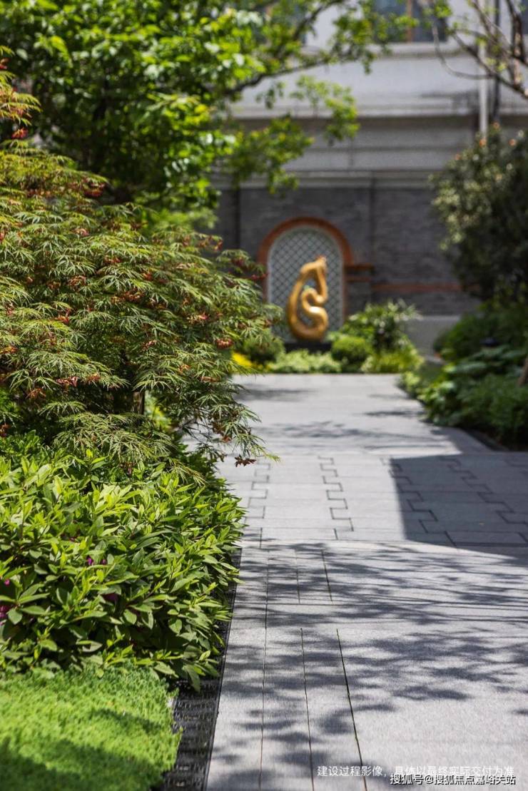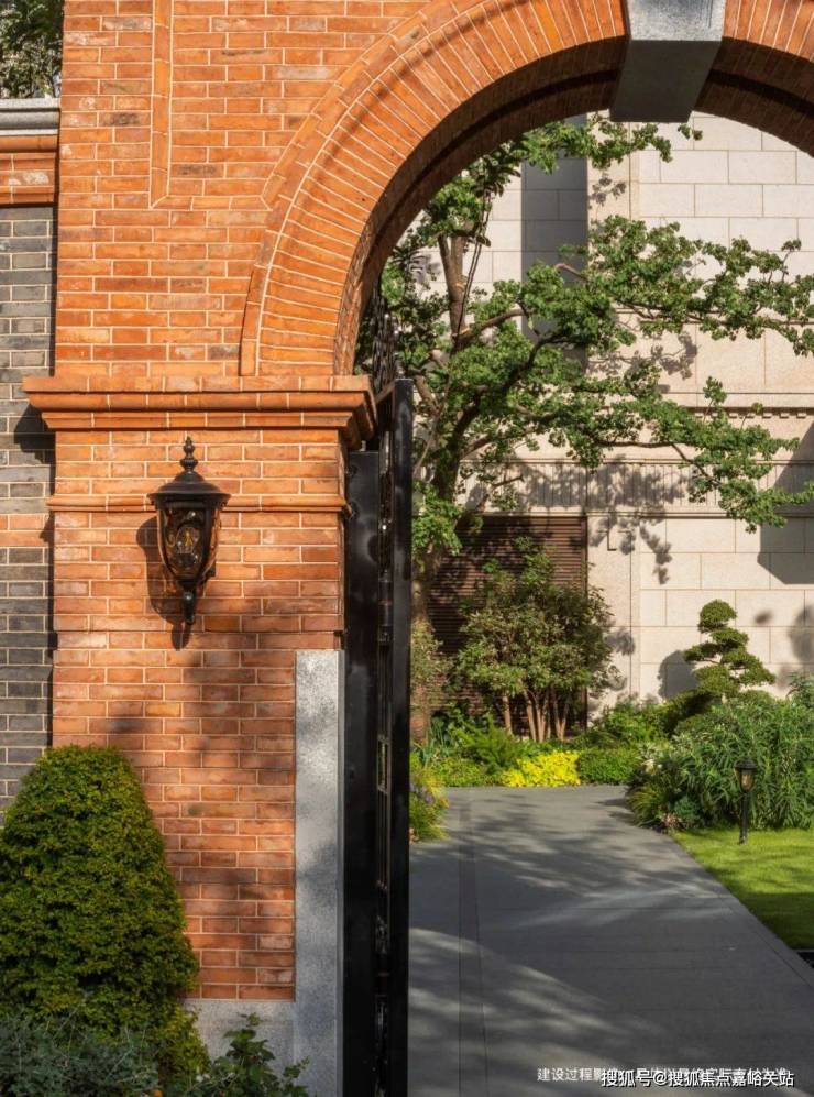 近人尺度的篱墙采铁艺栏杆,非近人尺度则用铸铁栏杆,体现斑驳感,景观节点使用元宝缝古法,凝固时间的心意。