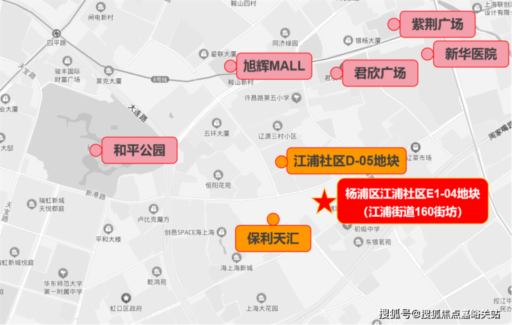 项目地址:杨浦区内环内,北至辽源西路,西至南北通道,南至飞虹路,东至许昌路。