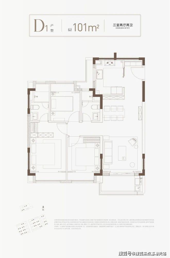 建面约100/101㎡的3房2厅2卫