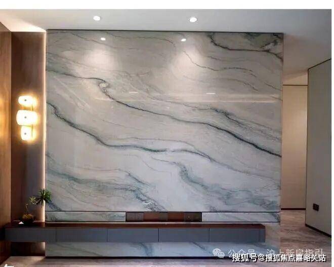 电视背景墙选用带有东方意蕴的万里河山石材,颜值超高!