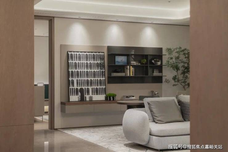 圆弧造型吊顶,弧形形体的几何感和圆弧的温润,拉高了整个空间的颜值...