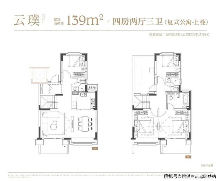 项目叠墅户型有建面约142㎡下叠,建面约139㎡上叠。