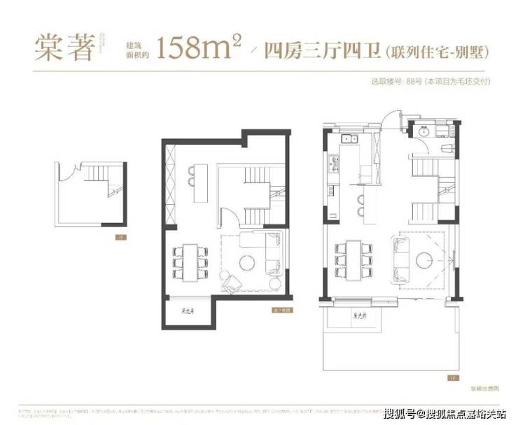 项目主力有建面约158㎡、165㎡联排别墅户型,地上三层+地下空间,设置地下采光井+星空露台等,真正做到了独门独户、有天有地、超享空间!联排皆是独门独户,入户设置在建筑主体北侧,门扇精美蚀刻工艺,尽显雅奢品质。