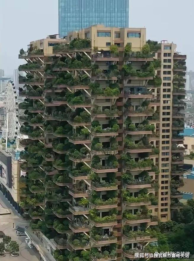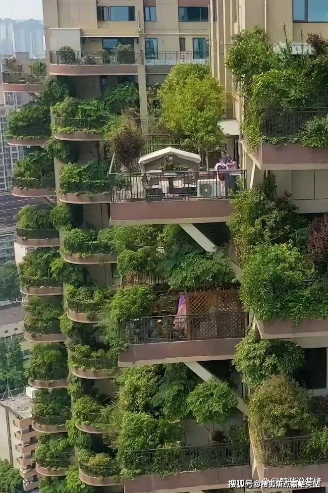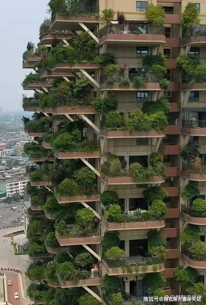 小区里面的绿化已经不能满足人们对健康的渴望,“第四代住宅”让你直接把“绿化”带回家。从远处看,整栋楼都好像被绿植包裹住了。
