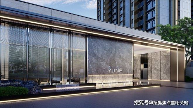 例如立面。 顶级的铝材立面用料大面玻璃结合简洁的直线条大面积无框开敞阳台玻璃的设计,搭配香槟色金属边框