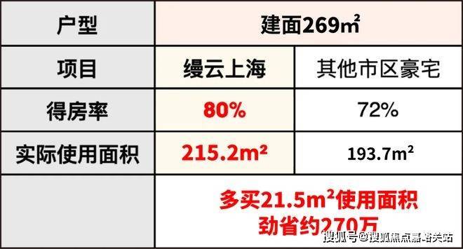 同样面积段,缦云上海多享受起码约21.4㎡的实际使用空间,这就是项目能做5房的根本原因。