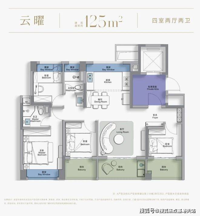 创新“三阳台分区功能”:景观阳台、生活阳台、次卧阳台各司其职,解决“晾晒占用休闲空间”的生活痛点;