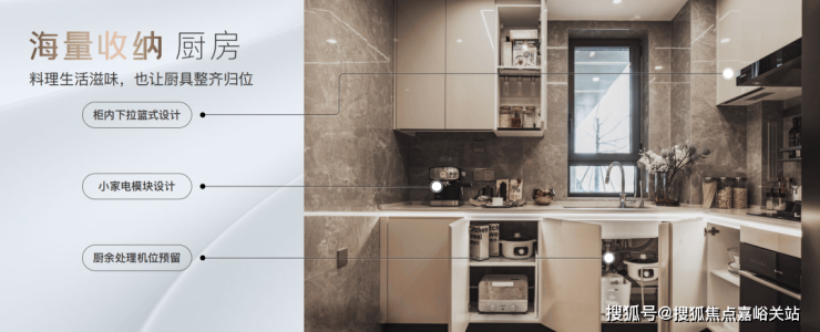 橱柜收纳系统:特别预置洗碗机点位、柜内下拉篮式设计、不锈钢挡油板、☑️☑️保利光合上城售楼处电话:400 - 8377 - 020☑️☑️柜下操作灯、烹饪全流程功能动线一体化设计;